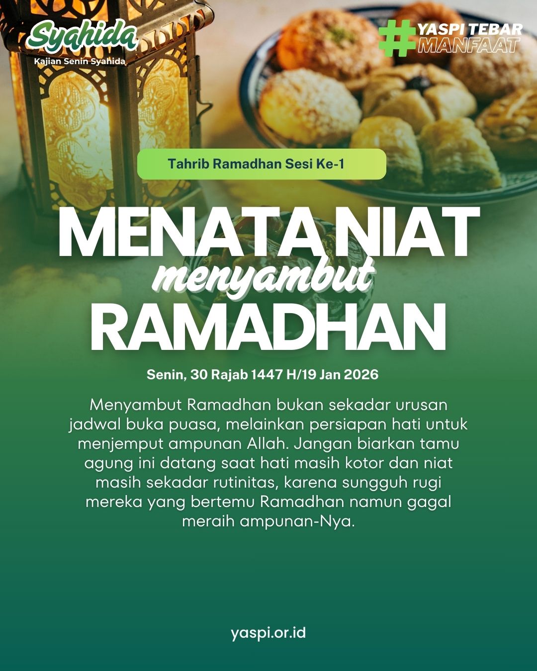 Mari kita: Menata niat, Membersihkan hati, Memperbaiki hubungan, Menyambut Ramadhan dengan iman, bukan hanya agenda.