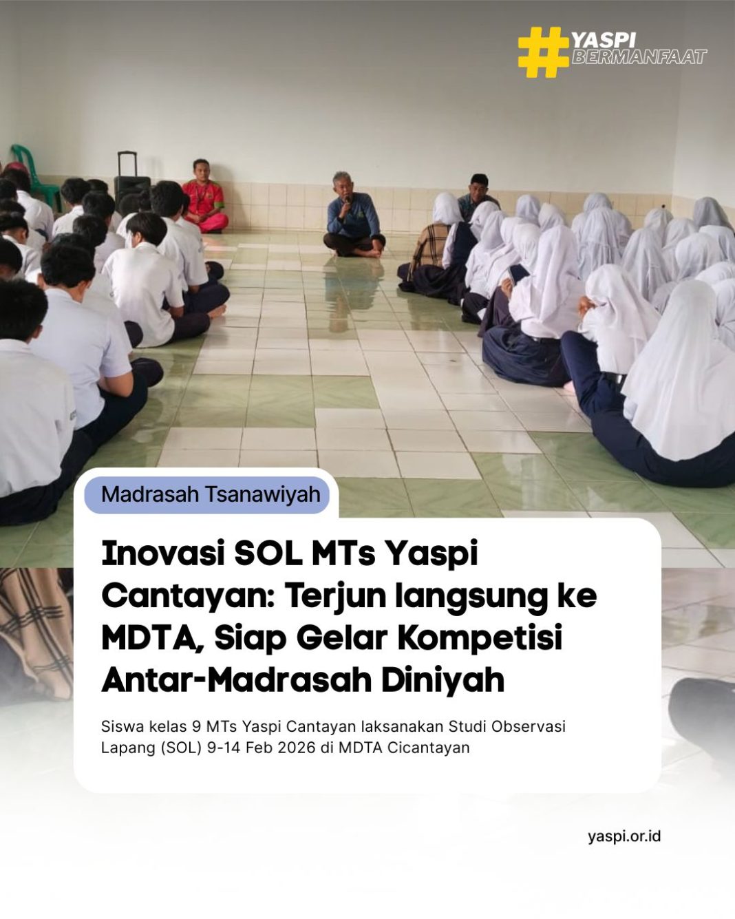 CANTAYAN, SUKABUMI – Madrasah Tsanawiyah (MTs) Yaspi Cantayan menggelar kegiatan Pembekalan Studi Observasi Lapang (SOL) pada Rabu (04/02) di lingkungan sekolah. Kegiatan ini merupakan bagian dari persiapan matang bagi siswa kelas 9 sebelum mereka terjun langsung berinteraksi dengan masyarakat dalam agenda rutin tahunan tersebut.